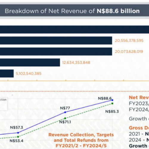 By: Justicia Shipena The Namibia Revenue Agency (NamRA) has surpassed its revenue target for the financial year FY2024/5, collecting a net total of N$88.6 billion to beat the target of N$85.3 billion. According to the agency’s report, their gross revenue collection reached N$98.9 billion, with refunds amounting to N$10.4 billion for the period from 01 […]