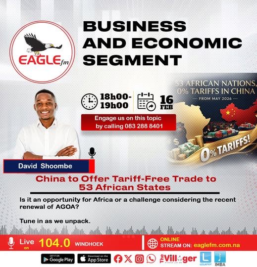 BUSINESS AND ECONOMIC SEGMENT WITH DAVID (16 FEBRUARY 2026) 16th February 2026 / EAGLE FM China to Offer Tariff-Free Trade to 53 African States Is it an opportunity for Africa or a challenge considering the recent renewal of AGOA?