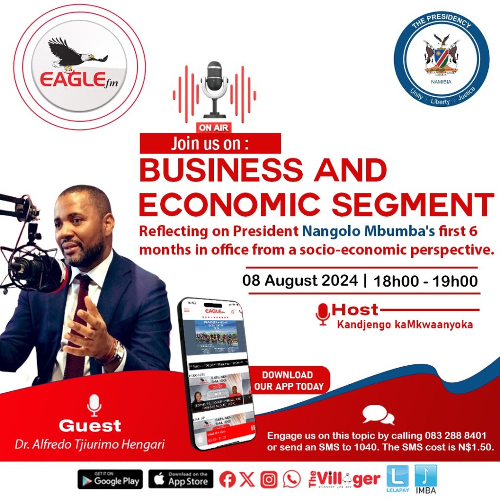 BUSINESS & ECONOMIC SEG WITH KANDJENGO (8 AUGUST 2024) 8th August 2024 / EAGLE FM Reflecting on President Nangolo Mbumba 6 months in office from a socio-economic perspective.