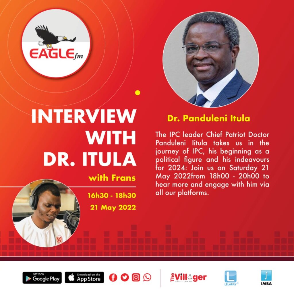 INTERVIEW WITH Dr. ITULA (21 MAY 2022) 21st May 2022 / EAGLE FM JOURNEY OF IPC, Dr. iTULA’S BEGINING AS A POLITICAL FIGURE AND HIS INDEAVOURS FOR 2022