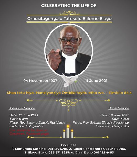 MEMORIAL SERVICE TATEKULU SALAMO ELAGO ( 17 JUNE 2021) 17th June 2021 / EAGLE FM CELEBRATING THE LIFE OF OMUSITAGONGALO TATEKULU SALOMO ELAGO