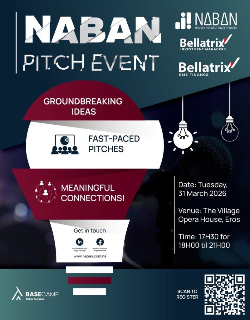 The Namibia Business Angel Network (NABAN), in partnership with Bellatrix SME Finance, Bellatrix Investment Managers, Bellatrix Green Finance and Basecamp Business Incubator, invites you to an evening of innovation, high-potential founders and meaningful conversations around green and climate-aligned enterprise in Namibia.