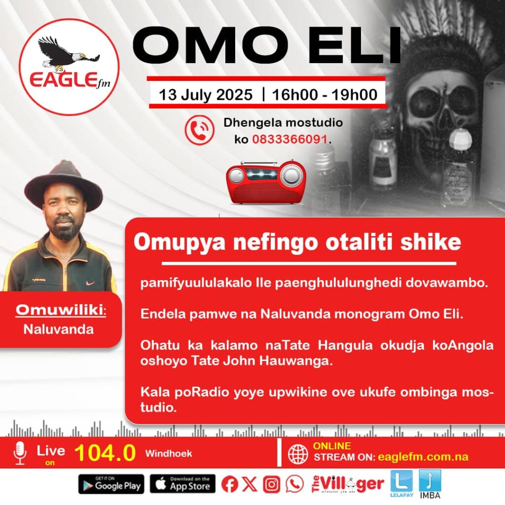 OMO ELI WITH NALUVANDA (13 JULY 2025) 13th July 2025 / EAGLE FM Nena otwali momo natate Hangula kudja koAngola oshoyo Tate J Hauwanga okwali atupopi omupya netikilo.