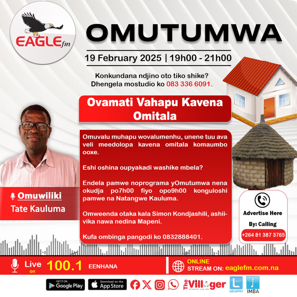 Endela pamwe noprograma yOmutumwa nena okudja po7h00 fiyo opo9h00 konguloshi pamwe na Natangwe Kauluma.