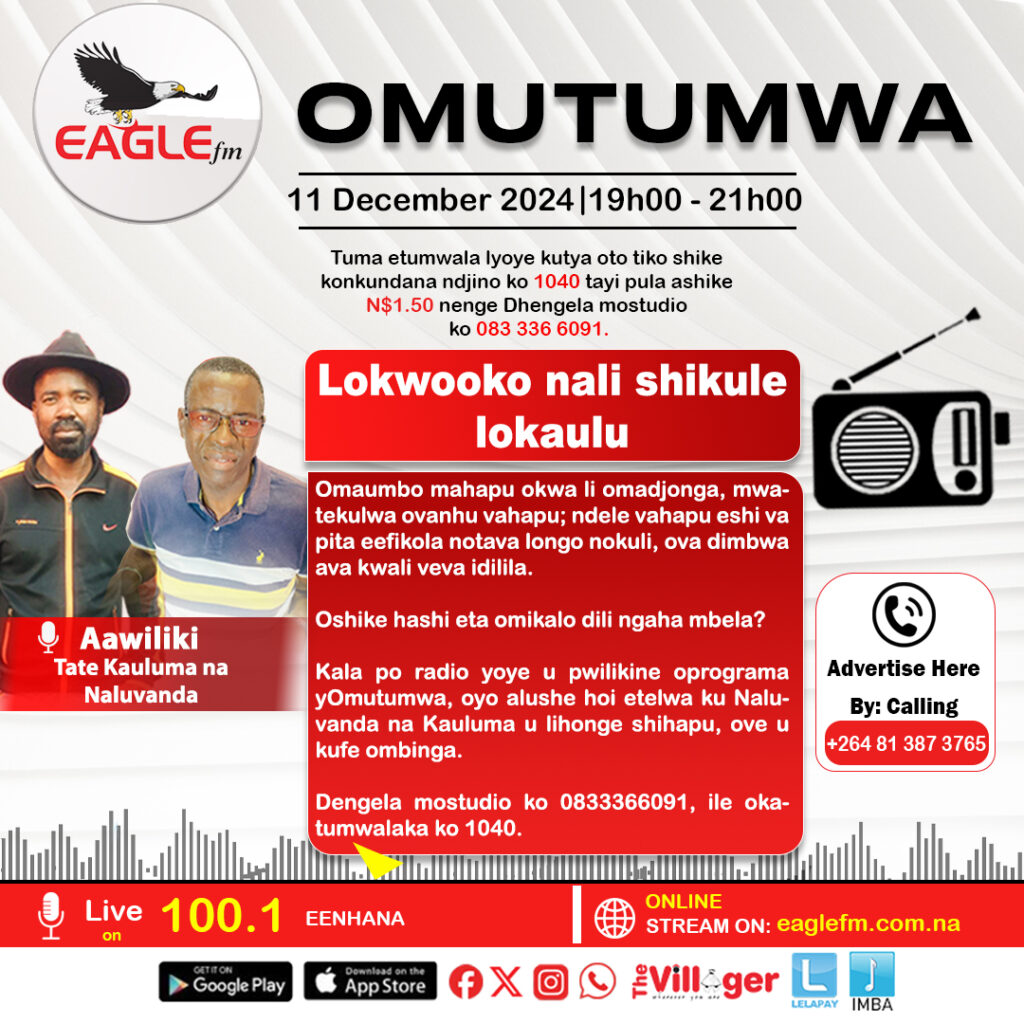 Kala po radio yoye u pwilikine oprograma yOmutumwa, oyo alushe hoi etelwa ku Naluvanda na Kauluma u lihonge shihapu, ove u kufe ombinga.