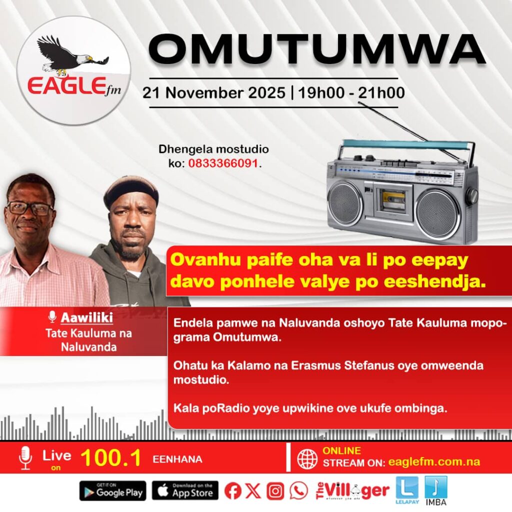 OMUTUMWA PAMWE NA KAULUMA NA NALUVANDA (21 NOVEMBER 2025) 21st November 2025 / EAGLE FM Ovanhu paife oha va li po eepay davo ponhele valye po eeshendja.