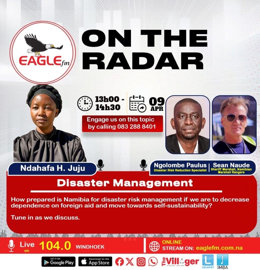 ON THE RADAR WITH HAPPY JUJU (9 APRIL 2026) 9th April 2026 / EAGLE FM How prepared is Namibia in handling disaster risk management if we are to stay away from dependence and move towards self sustainability? A discuss we had alongside Sean Naude and Ngolombe Paulus