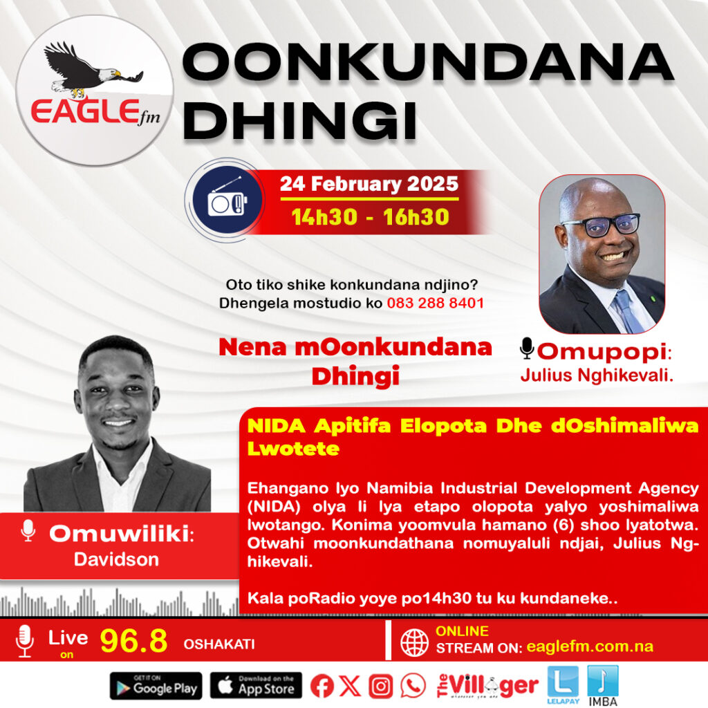David okwali ayi moonkundathana na Julius Nghikevali omnanbelewa gwoshimaliwa mo NIDA. Na oya popi shina sha no lopota yoshimaliwa ndjoka yali ya gandjwa lwotango Konima yoomvula 6.