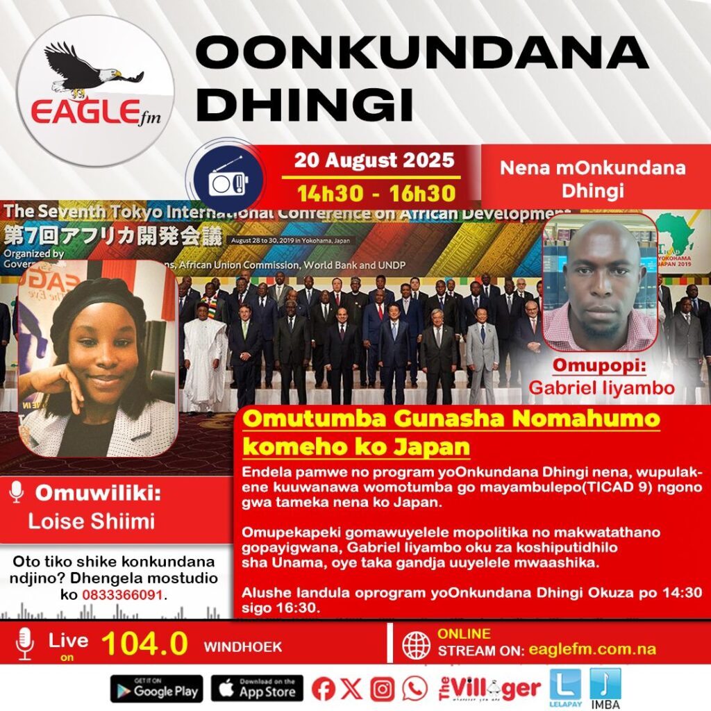 ONKUNDANA DHINGI PAMWE NA LOISE (20 AUGUST 2025) 20th August 2025 / EAGLE FM Otwali twa tala kOmutumba Gunasha Nomahumo komeho ko Japan Omupekapeki gomawuyelele mopolitika no makwatathano gopayigwana, Gabriel Iiyambo oku za koshiputidhilo sha Unama, oye agandja uuyelele mwaashika.