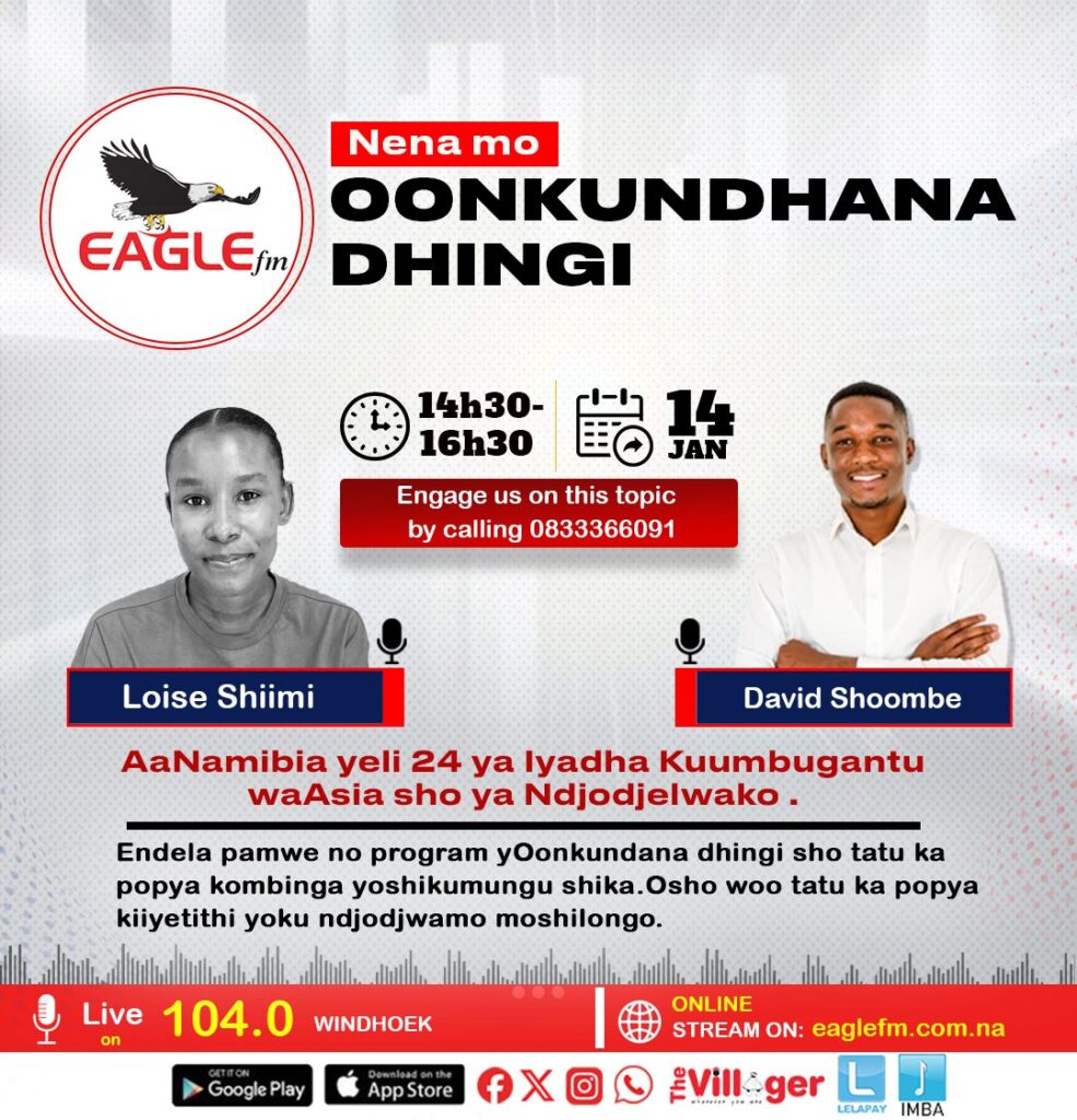 OONKUNDANA DHINGI PAMWE NA LOISE (14 JANUARY 2026) 14th January 2026 / EAGLE FM AaNamibia yeli 24 ya Iyadha Kuumbugantu waAsia sho ya Ndjodjelwako .