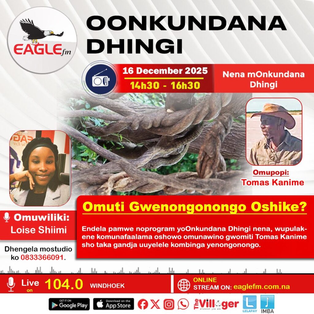 OONKUNDANA DHINGI PAMWE NA LOISE (16 DECEMBER 2025) 16th December 2025 / EAGLE FM Nena MoOnkundana Dhingi otwa popya kombinga yomuti Gwenongonongo kutya oshike, nogwasimana ngiini? omunafaalama oshowo omunawino gwomiti Tomas Kanime okwali agandja uuyelele kombinga yenongonongo.