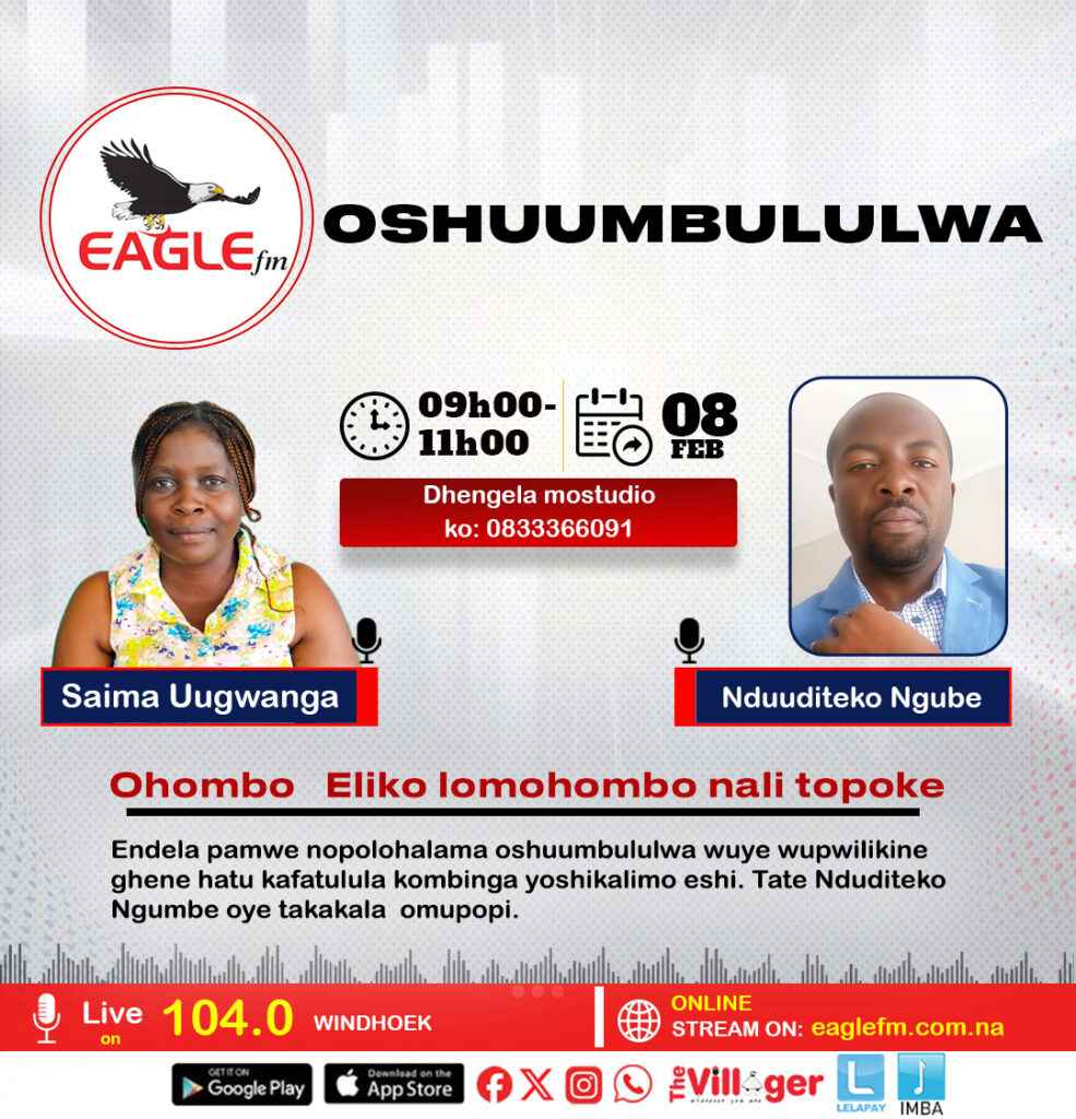 OSHUUMBULULWA PAMWE NA NDUUDITEKO NGUBE (8 FEBRUARY 2026) 8th February 2026 / EAGLE FM Ohombo Eliko lomohombo nali topoke.