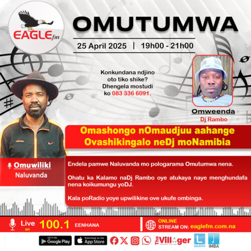 Omashongo nOmaudjuu aahange Ovashikingalo neDj moNamibia Endela pamwe Naluvanda mo pologarama Omutumwa nena. Ohatu ka Kalamo naDj Rambo oye atukaya naye menghundafa nena koikumungu yoDJ.