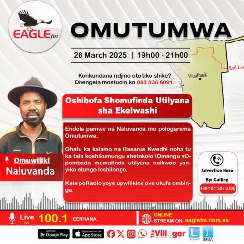 Endela pamwe Naluvanda mo pologarama Omutumwa. Ohatu ka kalamo naRasarus Kwedhi noha tu ka tala koshikumungu shetokolo lOmangu yOpombada momufinda utilyana naikwao yanyika etungo loshilongo.