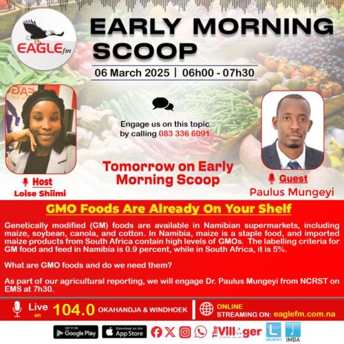 We have looked at various update on the economics. Touched on the maize productions whereas we spoke to Loide Wahengo from NAB to share where we stands as a country in terms of maize productions, we also spoke to farmers in sharing their inputs. We spoke to Paulus Mungeyi on the GMOs.