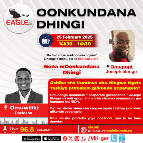 Oshike sha Pumbwa oku Ningwa Ngele Tashiya pOmalelo gIikondo yEpangelo? Omunongo momalelo ” corporate governance ” Joseph Iilongo okwali apopi shina sha niizemo yomayalulo gehangano lya NIDA. Oshike shoka shina oku ningwa ngele tashiya pomalelo giikondo yepangelo.