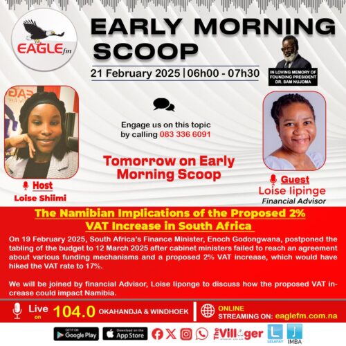 On this edition we spoke to a financial advisor, Loiss Iipinge to discuss on the proposed increase in VAT. We also engaged with different farmers on the armyworm outbreak in Zambezi. Furthermore the ministry of nighter education, Technology and innovation corroborates with NTA to transform TVETs