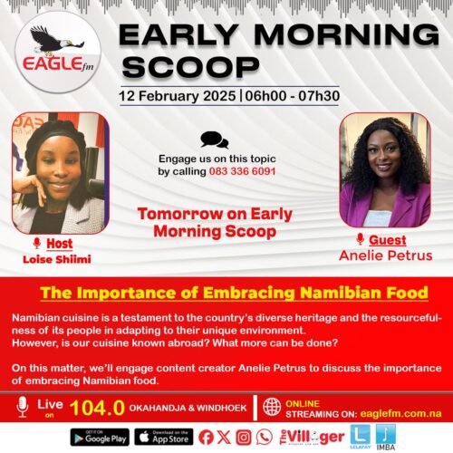 1. We looked at different economic aspects of the country whereas we engaged with economists to predict the repo rate. 2. To reflect to Dr Sam Nujoma’s legacy, we spoke to marten Elago: 3. Anelie Petrus shared the importance of Namibian food. 4. Uaueza update is on the fishrot case as well as the ECN.