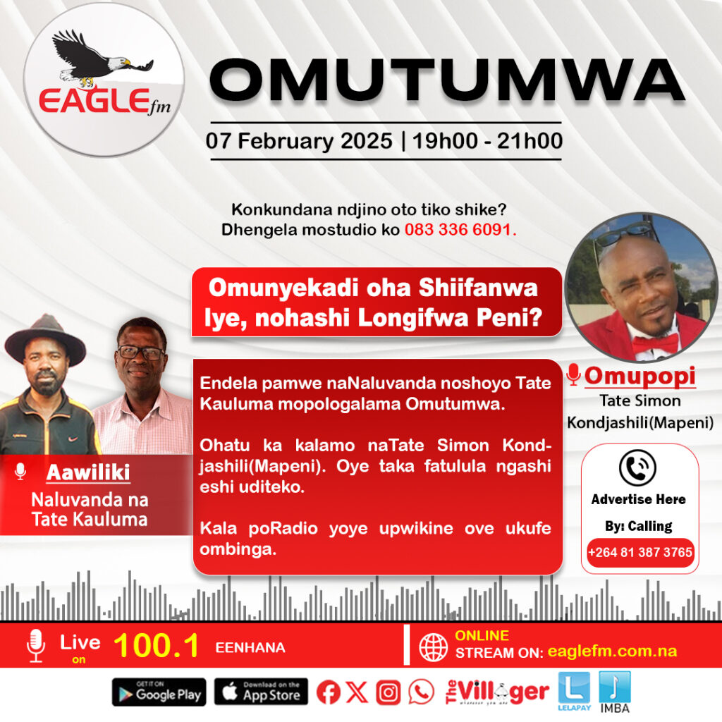 Omunyekadi oha Shiifanwa lye, nohashi Longifwa Peni? Endela pamwe naNaluvanda noshoyo Tate Kauluma mopologalama Omutumwa. Ohatu ka kalamo naTate Simon Kondjashili(Mapeni). Oye taka fatulula ngashi eshi uditeko.
