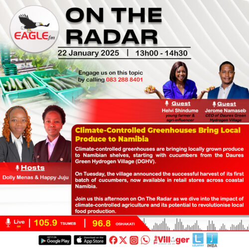 Controlled Greenhouses Bring Local Produce to Namibia Climate-controlled greenhouses are bringing locally grown produce to Namibian shelves, starting with cucumbers from the Daures Green Hydrogen Village (DGHV). On Tuesday, the village announced the successful harvest of its first batch of cucumbers, now available in retail stores across coastal Namibia. Join us this afternoon on On […]