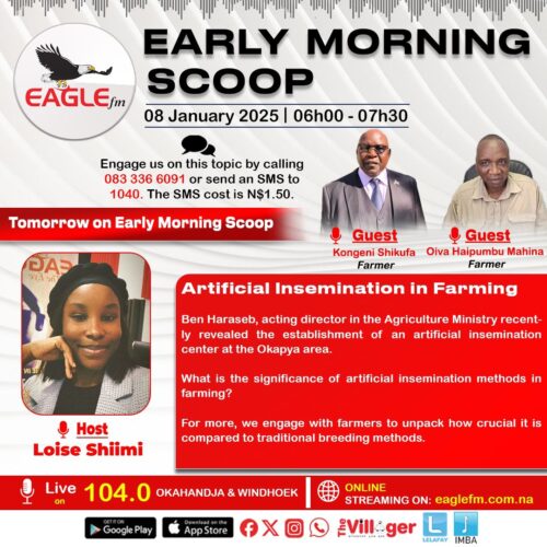 1. On the Early morning scoop we spoke to farmers on the food donations Namibia is expecting from china. . We also engage farmers on the establishment of Artificial insemination center in the okapya area. Nghiinomwena spoke to us about the announcement that the Namibia Student Financial Assistance Fund (NSFAF) will be re integrated back […]