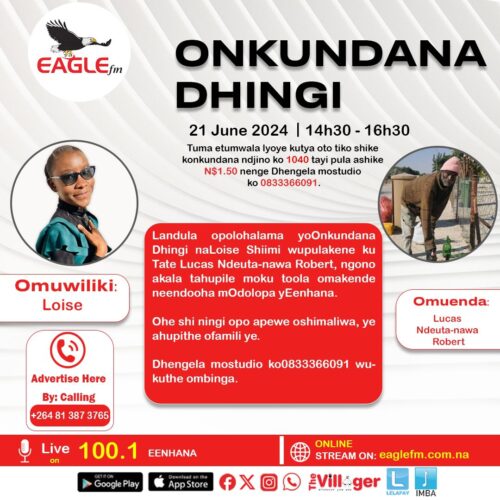 1.Oradio yetu your Eagle Fm otwali twa tala ko miyalu dhaatalelipo yatalelepo oshilongo okuza kondje yiilongo no meni loshilongo miitopolwa ayishe yomoshilongo, mono kwali twa popi nagumwe gomaanawino yomatalelipo Loise David. 2.Bright freelancing company oyali yena oshigongi longa shaanangeshefa oku ya pukulula ngele tasheya keempito noku kokeka eempito dhowo. Nomwashika okwali twa popi no nambelewa […]