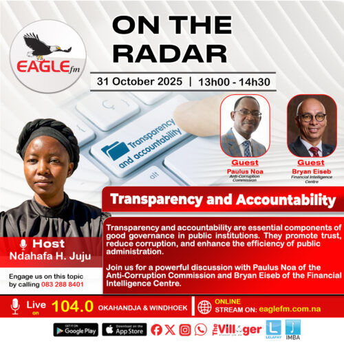 We got into a discussion on transparency and accountability, which are essential components of good governance in public institutions with Paulus Noa of the Anti-Corruption Commission and Bryan Uiseb of the Financial Intelligence Centre,