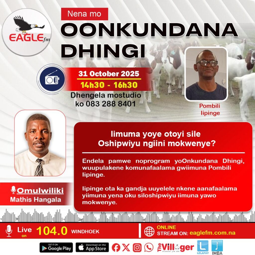 Otwa popya na Josef Kefas Sheehama oo etu fatululila kutya oku kala twa tulwa momusholondodo wafa onata otashiti ngahelipi. Okwetu fatululila kutya okushunifako o Euro Bond otashiti ngahelipi. Otwa popya yoo na Annakleta Haikera oo etupa onghundana kutya okwali aya koDivundu oko kwali kuna eehololo lomadilaadilo shinasha novanhu ovo hava dipawa keengadu. Otwa popya yoo […]