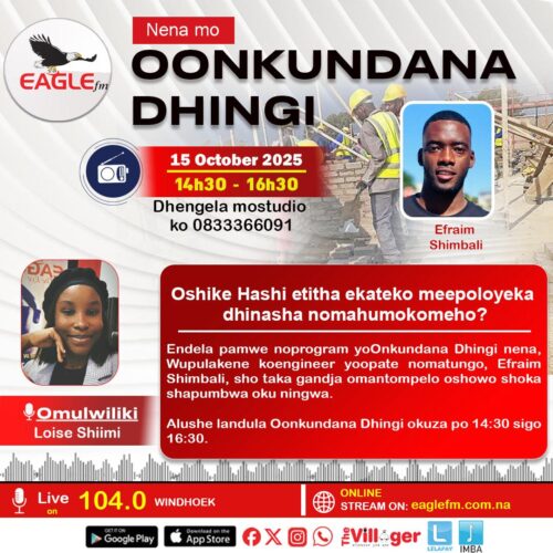 Otwali twa popya noengineer yeepate nomatungo, Efraim Shimbali, kombinga yomantompelo oshowo shoka shapumbwa oku ningwa po ngele tashiya koku longitha omutwngwanekwathaneko ngaashiguna oku kala onene moshitopolwa shokuyambulapo nokumana eepoloyeka. Otwali wo twa popya nomunongononi gopaliko, Joseph Kefas Sheehama kombinga yiishoshela yokeembanga mbyoka yili yashuna pevi nepelesenda 0.25%. Otwali wo twa popi kombinga yoshikondo Meatco shalanditha […]