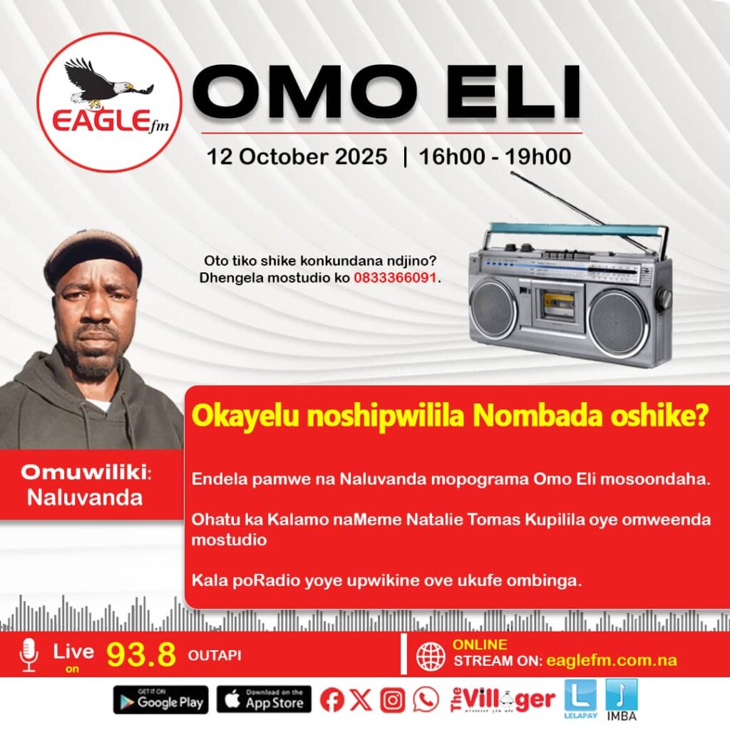 Okayelu noshipwilila Nombada oshike? Endela pamwe na Naluvanda mopograma Omo Eli mosoondaha. Ohatu ka Kalamo naMeme Natalie Tomas Kupilila oye omweenda mostudio Kala poRadio yoye upwikine ove ukufe ombinga.