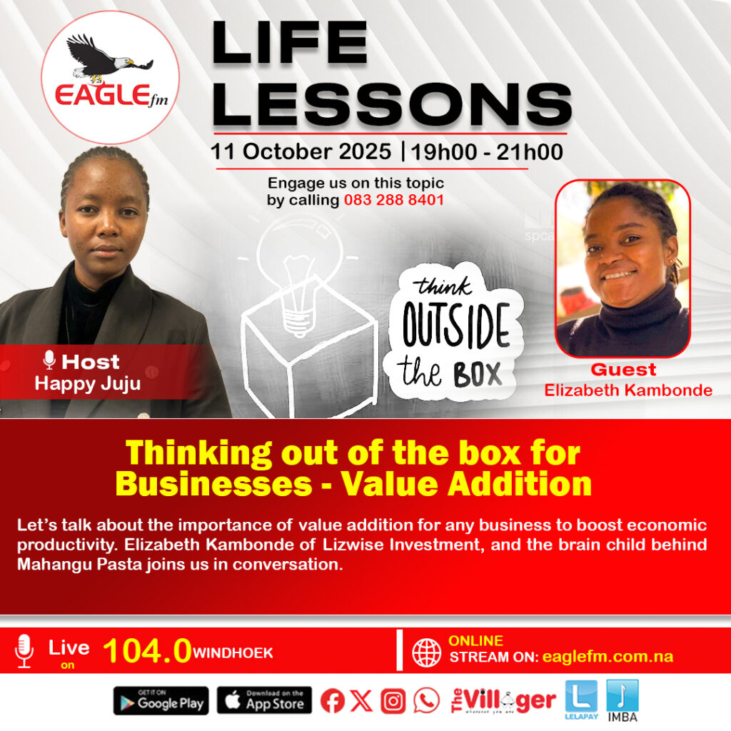 1. Thinking out of the box for businesses- Value Addition This episode focused on the importance of value addition for any business in order to boost economic productivity, Elizabeth Kambonde of Lizwise Investment and the brain child behind Mahangu Pasta walked us through practical steps of how she turned Mahangu floor into Mahangu Pasta.