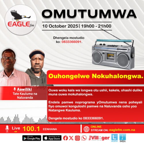 Ouhongelwe Nokuhalongwa. Ouwa woku kala wa longwa otu ushii, kakele, ohashi dulika muna ouwa mokuhalongwa. Endela pamwe noprograma yOmutumwa nena poheyali fiyo omuwoi konguloshi pamwe na Naluvanda osho yoo Natangwe Kauluma.
