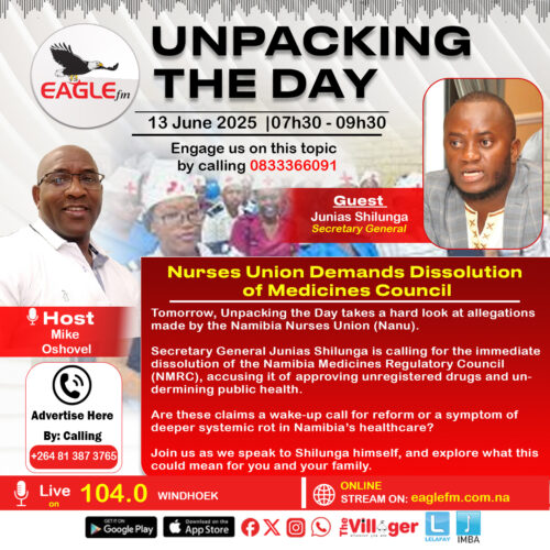 1. Nurses’ Union Demands Dissolution of Medicines Council, interviewed Junias Shilunga, General Secretary of NANU 2. Namibia’s New Debt Strategy: Shifting from International to Local Loans