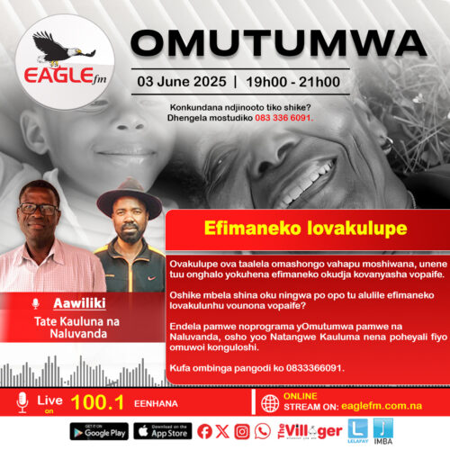 Efimaneko lovakulupe Ovakulupe ova taalela omashongo vahapu moshiwana, unene tuu onghalo yokuhnena efimaneko okudja kovanyasha vopaife. Oshike mbela shina oku ningwa po opo tu alulile efimaneko lovakulunhu vounona vopaife? Endla pamwe noprograma yOmutumwa pamwe na Naluvanda, osho yoo Natangwe Kauluma nena poheyali fiyo omuwoi konguloshi.