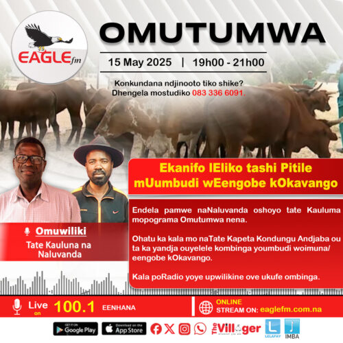 Nena okwali atupopi koumbudi wengobe nomaliko tayende takana otwali naTate Immanuel Shipanga.