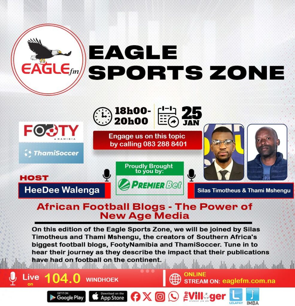 On this episode of the Eagle Sports Zone, we discussed the impact of Football Blogs in Africa. We spoke to the creators of two of the biggest blogs in SADC, Silas Timotheus & Thami Mshengu, the creators of FootyNamibia and ThamiSoccer