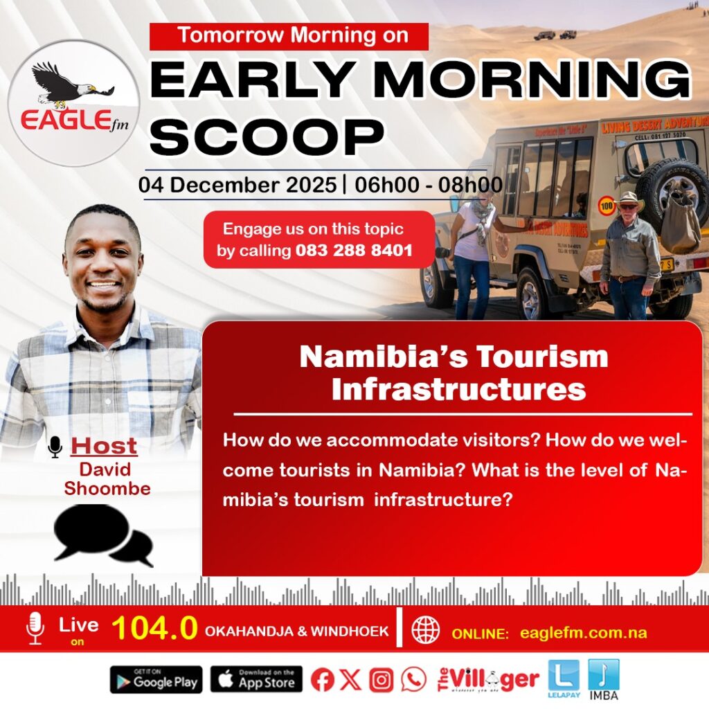 THE EARLY MORNING SCOOP WITH DAVID (4 DECEMBER 2025) 4th December 2025 / EAGLE FM How do we accommodate visitors? How do we welcome tourists in Namibia. What is the level of Namibia tourism infrastructure.
