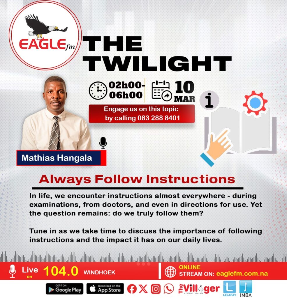 THE TWILIGHT WITH MATHIAS (10 MARCH 2026) 10th March 2026 / EAGLE FM In life, we encounter instructions almost everywhere—during examinations, from doctors, and even in directions for use. Yet the question remains: do we truly follow them?