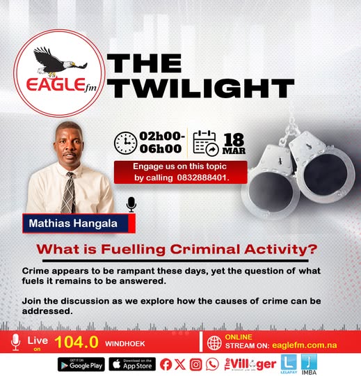 THE TWILIGHT WITH MATHIAS (18 MARCH 2026) 18th March 2026 / EAGLE FM What is Fuelling Criminal Activity? Crime appears to be rampant these days, yet the question of what fuels it remains to be answered.