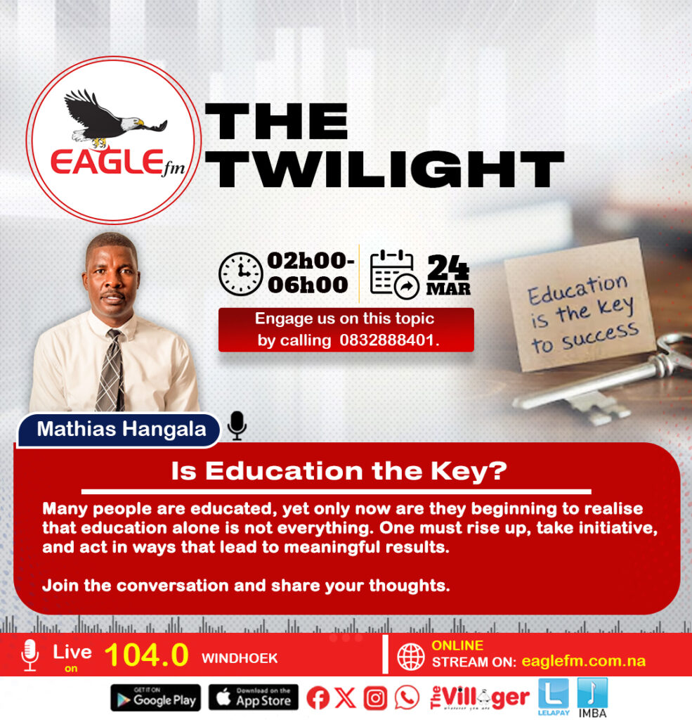 THE TWILIGHT WITH MATHIAS (24 MARCH 2026) 24th March 2026 / EAGLE FM Many people are educated, yet only now are they beginning to realise that education alone is not everything. One must rise up, take initiative, and act in ways that lead to meaningful results.