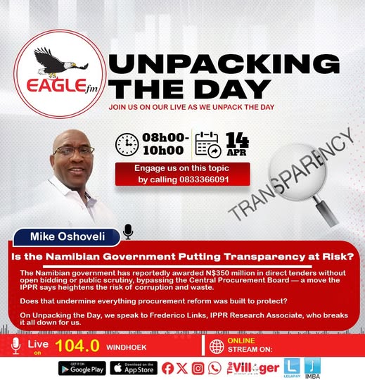 The Namibian government has reportedly awarded N$350 million in direct tenders without open bidding or public scrutiny, bypassing the Central Procurement Board — a move the IPPR says heightens the risk of corruption and waste.