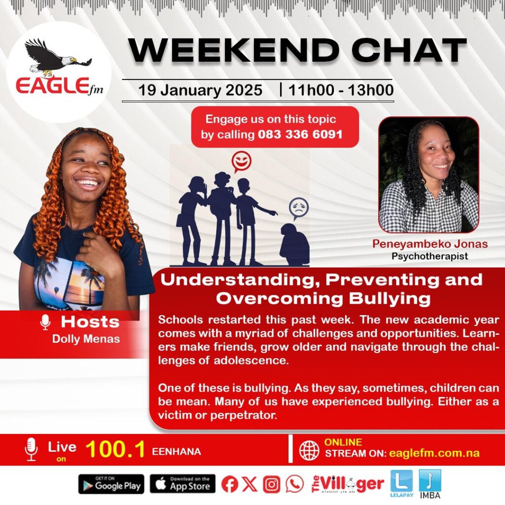 WEEKEND CHAT WITH DOLLY (19 JANUARY 2025) 19th January 2025 / EAGLE FM In this episode we discussed the concept of bullying, it’s effects and how we can protect ourselves from bullying.